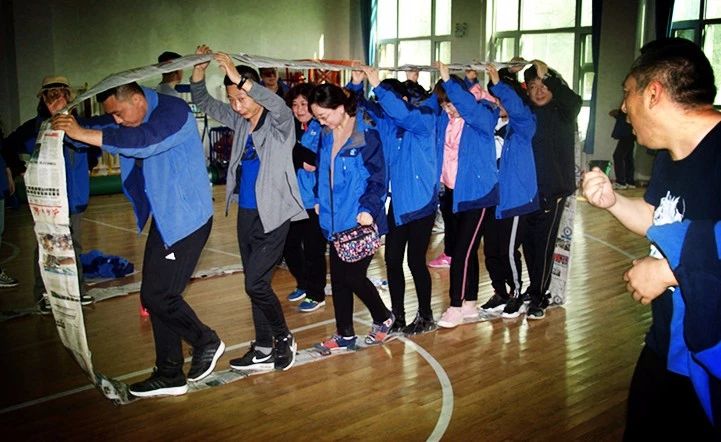每個隊用提供的材料將報紙圍成一個可以行進的履帶式的環(huán),要求本組所有成員在規(guī)則要求下走完規(guī)定的路程,以最快到達終點的組為優(yōu)勝。